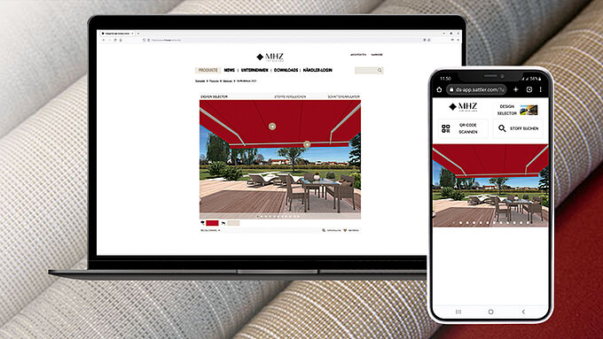 Finden Sie mit dem Design Selector den passenden Markisenstoff für die perfekte Markise für Ihre Terrasse in nur vier einfachen Schritten. Der Design Selector ermöglicht die Simulierung der verschiedenen MHZ Stoffe auf unterschiedliche MHZ Markisen Modelle. Mit der Eingabe von Ort und Datum können Sie den Sonnenstand per Schieberegler verändern und sehen, inwiefern die von Ihnen konfigurierte Markise je nach Tageszeit vor der wandernden Sonneneinstrahlung schützt.