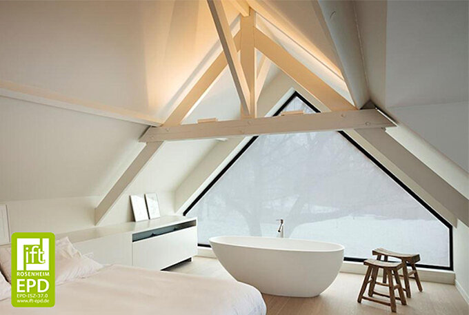 Das Haftgewebe lässt sich an allen Fenstern im Innenbereich anbringen und eignet sich für Fenster in Sonderformen. SQUID® schützt vor neugierigen Blicken von aussen, lässt aber trotzdem ausreichend Tageslicht in die Räume und erhält den Blickkontakt nach draussen.