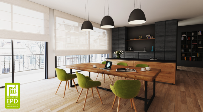 - Komplette Verdunklung mit Seitenführung und Abschlussschiene möglich