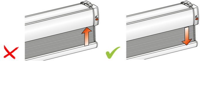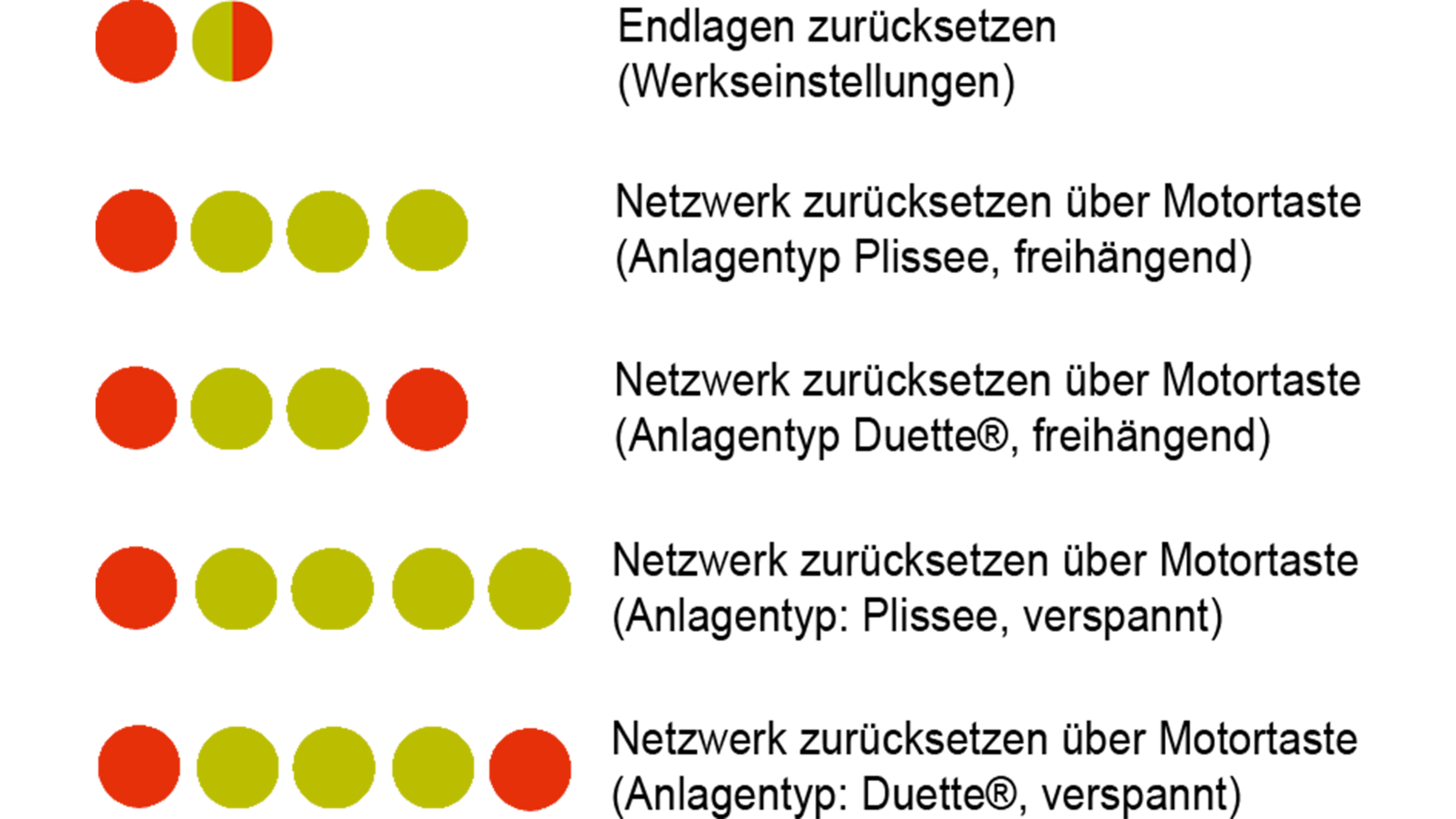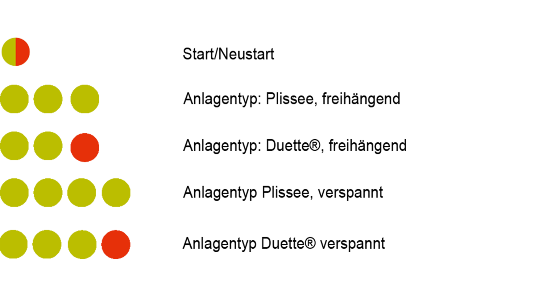 Der Motor kann für Freihängende Anlagen programmiert sein: Plissee, freihängend oder Duette®, freihängend. Der Motor kann ausserdem für verspannte Anlagen programmiert sein: Plissee, verspannt oder Duette®, verspannt.