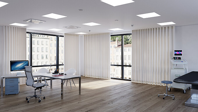- Gewebe mit unterschiedlichen funktionalen Eigenschaften wie Akustik, Abdunkelung/Verdunkelung, antibakteriell, Recycling Gewebe oder Leinenvorhänge