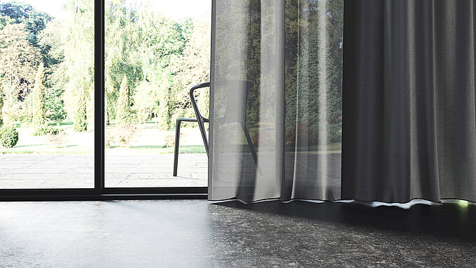 Für einen Mix aus transparent und blickdicht wählen Sie am besten einen halbtransparenten Vorhangstoff. Für noch mehr textilen Charakter und Funktionalität können an mehrläufigen Schienen unterschiedliche Transparenzstufen und Farben kombiniert werden.
