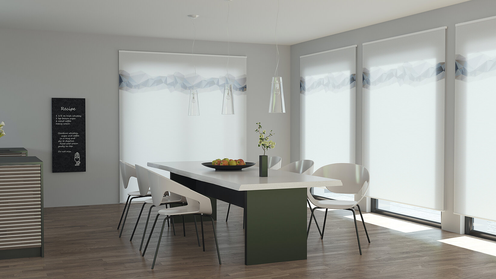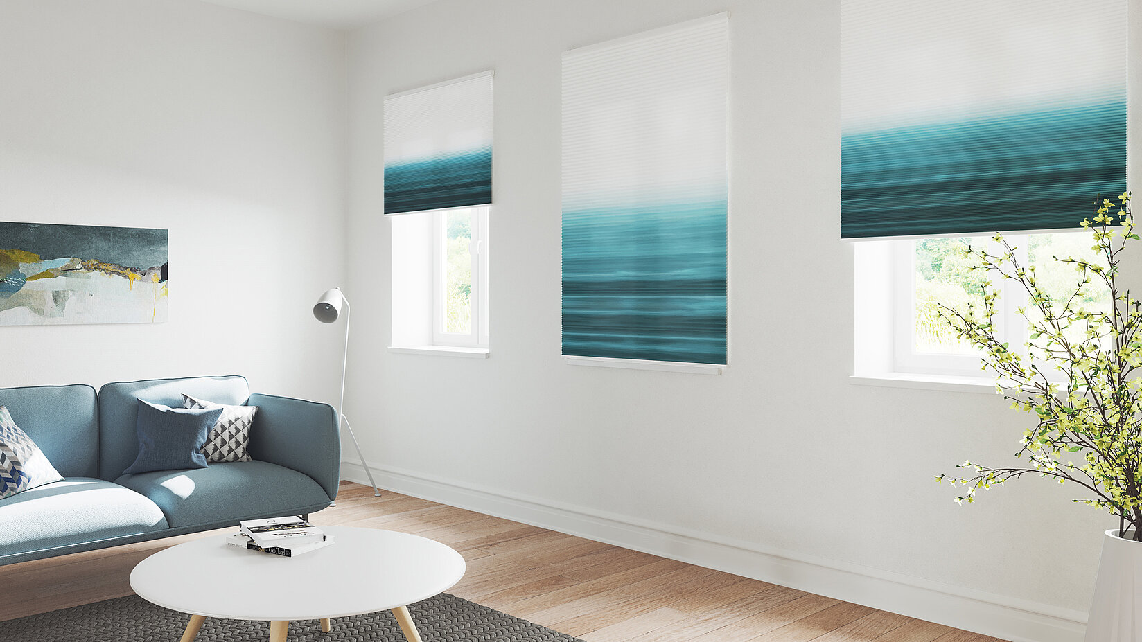Grossformatige Motive, hochwertige Stoffe und ausgewählte Farben – die MHZ Kollektion für DUETTE® Wabenplissees verleiht Räumen eine moderne, wohnliche Atmosphäre.