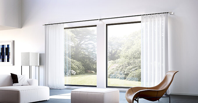 Dank der einzigartigen Stabilisierungstechnik benÜtigen Sie selbst bei XXL-Panoramafenstern keinen zusätzlichen Mittelträger mehr. Das spart Platz und sieht einfach besser aus. Auch fßr schwierige Raumsituationen, die eine Mittelträger-Montage ausschliessen, oder fßr schwere Vorhangstoffe bietet das integral die ideale LÜsung. Anwendbar in fast allen interstil-Vorhangstangen.