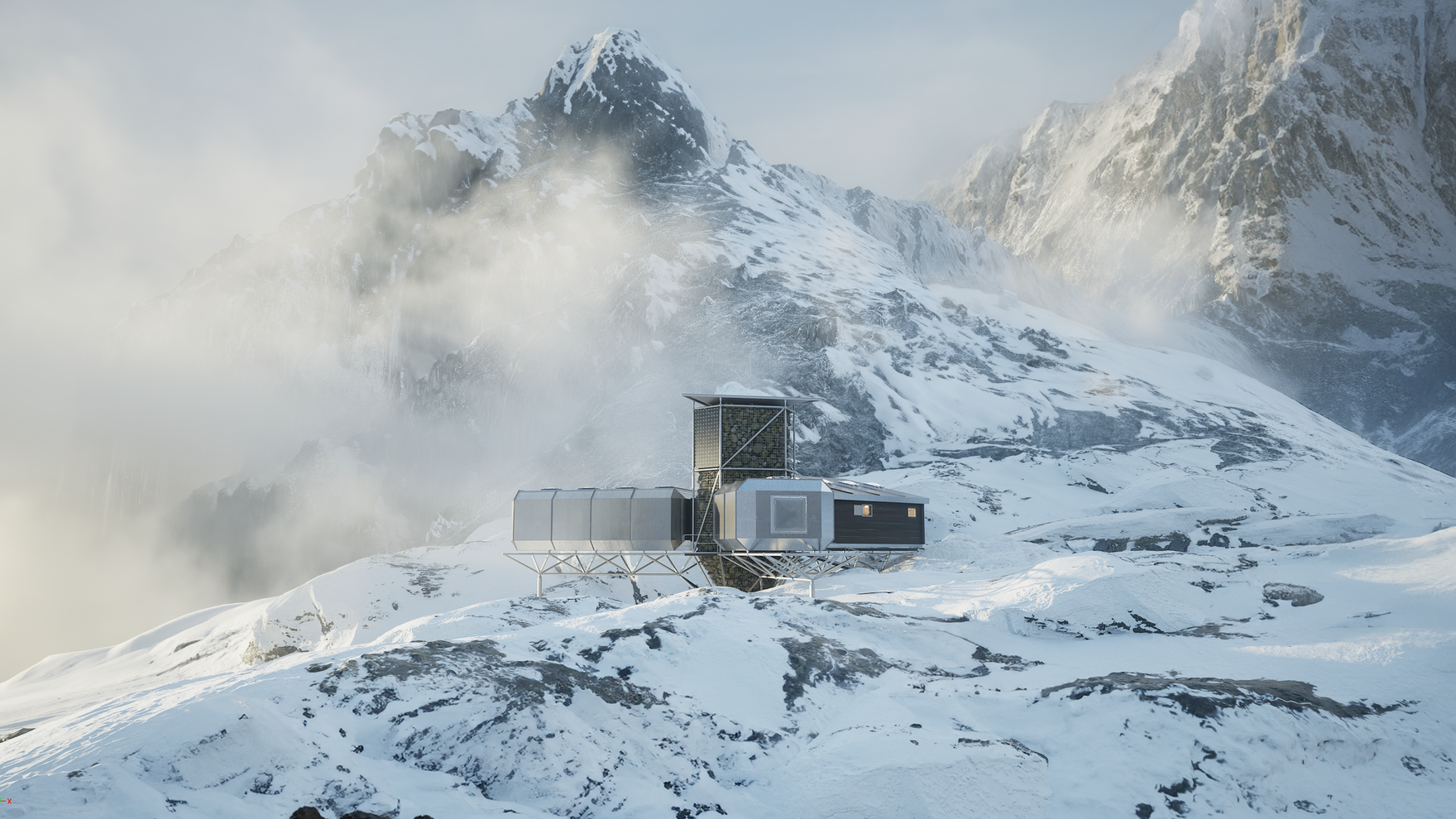 Die futuristische Hütte erinnert unweigerlich an eine Raumstation, die wie auf einem fremden Planeten einsam im Eis sitzt. Hier schliesst sich der Kreis zum Mutterschiff und seinen Raumsonden. Ein Sinnbild für die Bürostruktur und -philosophie von dorsa + 820: Wer sich mit den Unsicherheiten in der heutigen Zeit nicht bloss arrangiert, sondern sie konfrontiert und aus ihnen schöpft, findet vielleicht nicht nur zu neuen Ausdrucksformen, sondern auch zu neuen Formen der Zusammenarbeit.