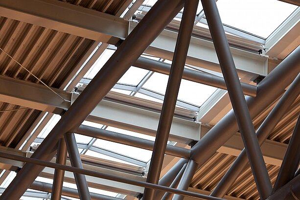 L’objectif était d’assurer des conditions de travail agréables et sans éblouissement aux postes de travail sur écran, tout en mettant en place un système permettant d’évacuer les fumées et la chaleur. Les constructeurs MHZ/CM ont conçu, pour les clapets d’évacuation des fumées et de la chaleur, des petits stores coaxiaux à traction opposée dotés d’une toile de protection solaire.