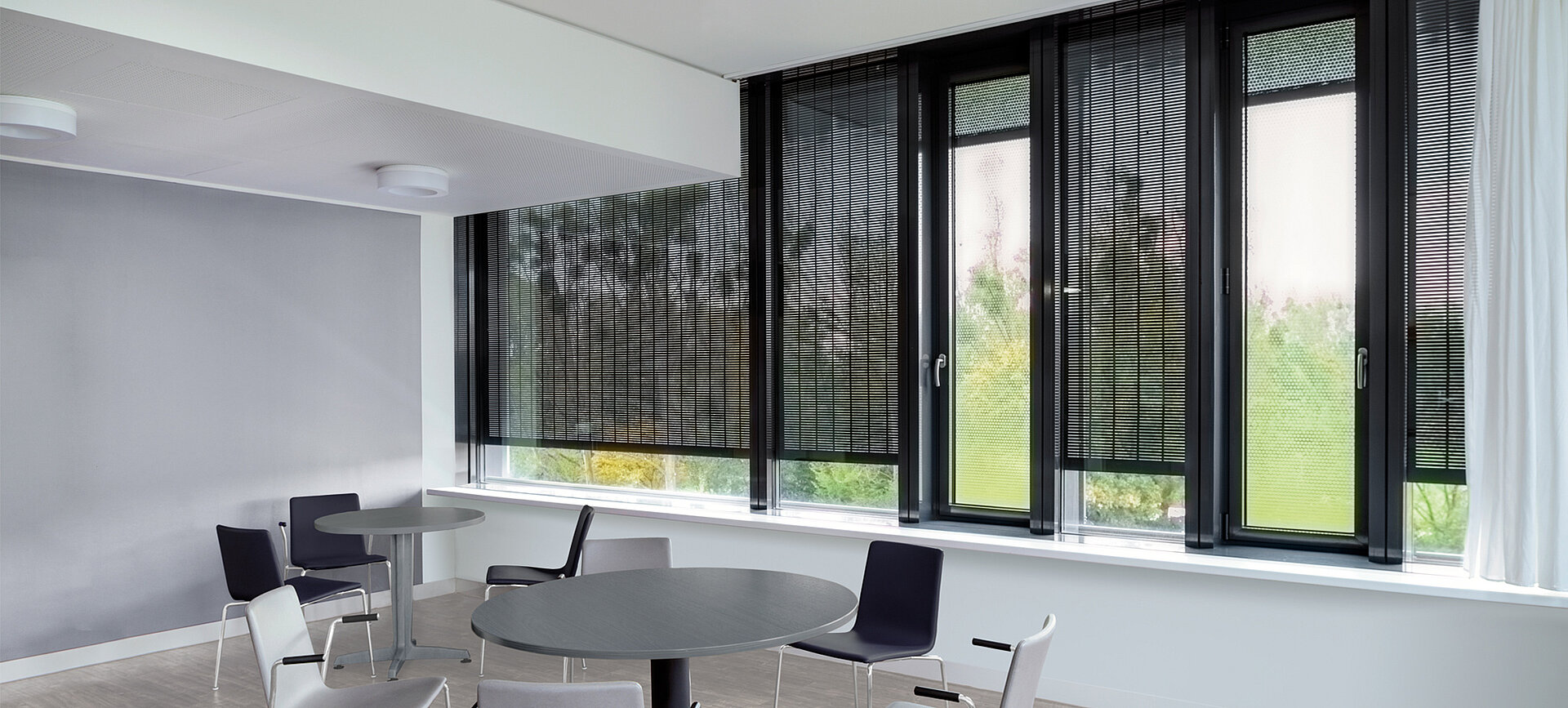 Avec ses lignes modernes, s_onro allie d’une manière fascinante protection solaire et volets roulants. Sa particularité réside dans sa construction unique. À partir d’un angle d’inclinaison de 20 degrés, le tablier en aluminium protège l’intérieur du bâtiment contre le rayonnement solaire direct. La quantité de lumière entrant dans la pièce peut être contrôlée individuellement en ouvrant et en fermant le tablier, jusqu’à l’obscurcissement complet. Avec sa transparence élevée, s_onro assure une bonne luminosité tout en préservant la visibilité vers l’extérieur.