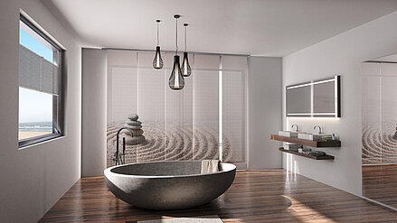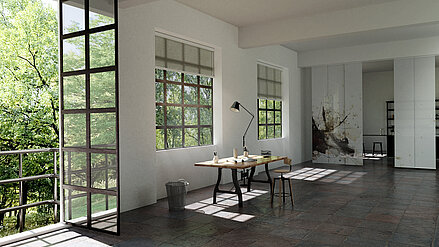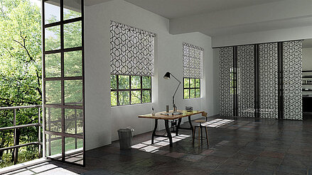 La collection Design est disponible pour tous les stores enrouleurs, parois japonaises, stores à bandes verticales, stores plissés, stores plissés nid d’abeilles et textile adhésif Squid (Chalk), permettant ainsi de mettre en œuvre un concept de protection solaire harmonieux pour toute la maison.