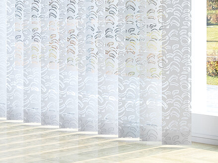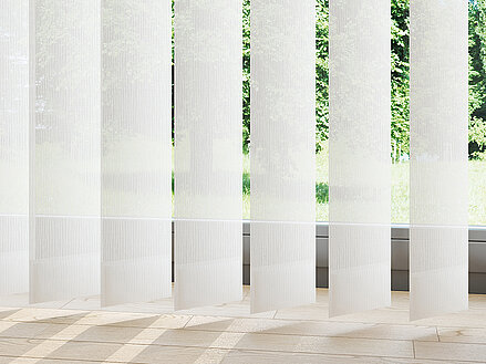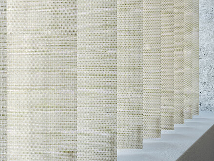 Qu’il s’agisse d’une toile légèrement brillante, d’une toile jacquard obscurcissante dans le style Shabby Chic ou de polyester de haute qualité à structure tissée large, la nouvelle collection MHZ de stores à bandes verticales apporte, avec des structures textiles exceptionnelles, une touche tendance dans les pièces. Une toile obtenue par la technique de tissage du «lancé-découpé» fait pour la première fois partie de la collection : la toile se caractérise par des fils de trame qui sont coupés après le tissage et créent une structure unique.