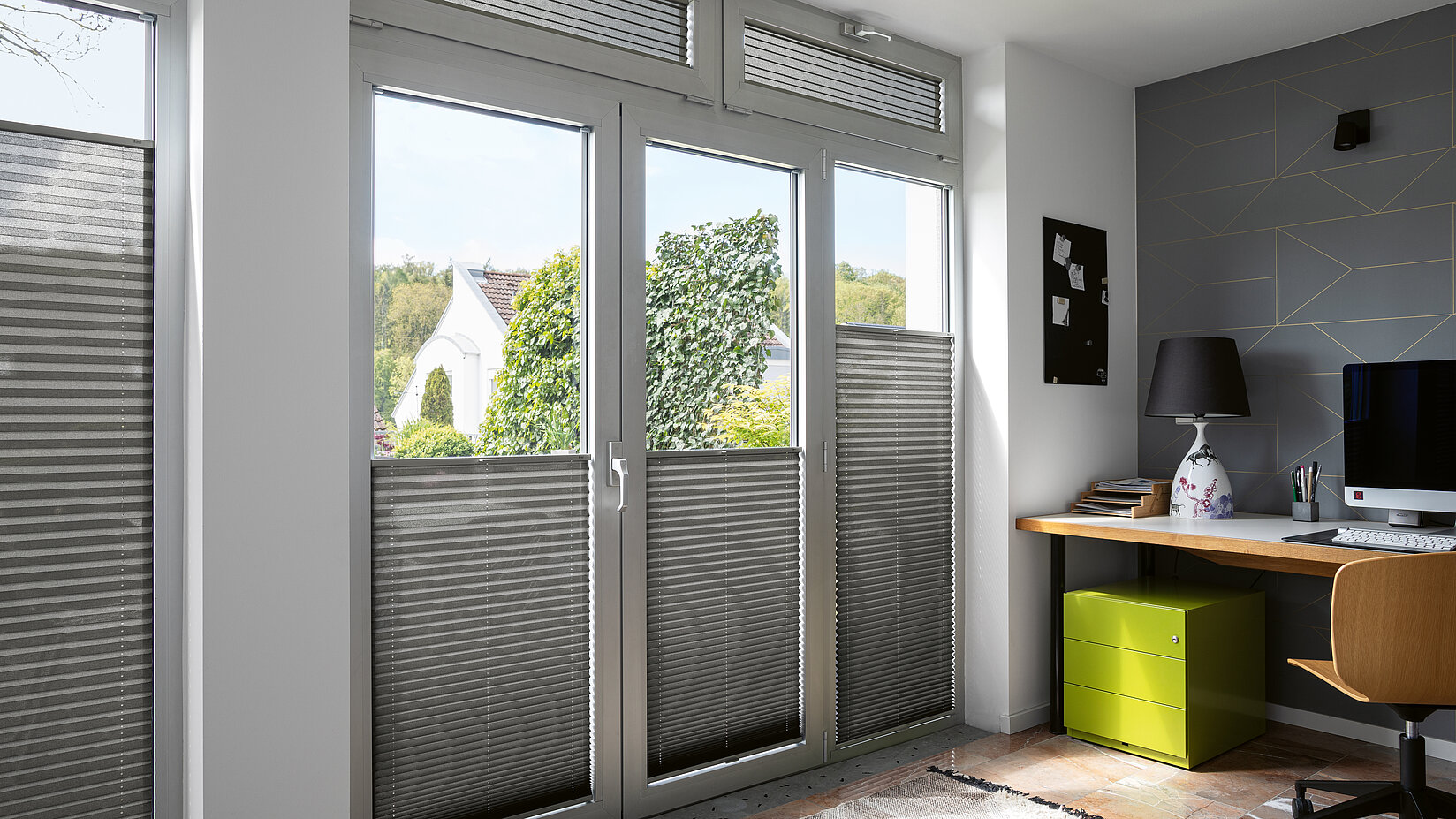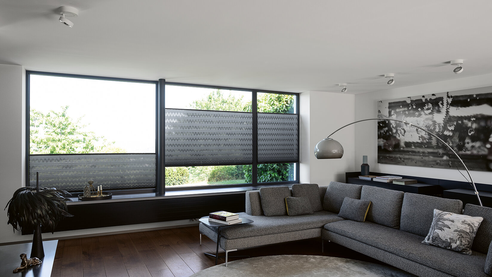 Les stores plissés existent en version tendue et à suspension libre. Si vous souhaitez monter votre store plissé directement sur le châssis de fenêtre, nous vous recommandons la version tendue : elle offre l’avantage de pouvoir basculer et ouvrir librement les battants de fenêtre avec leur protection contre les regards indiscrets. De plus, le tissu peut être déplacé librement aussi bien par le haut que par le bas. Le positionnement du store plissé devant la fenêtre est ainsi très flexible.