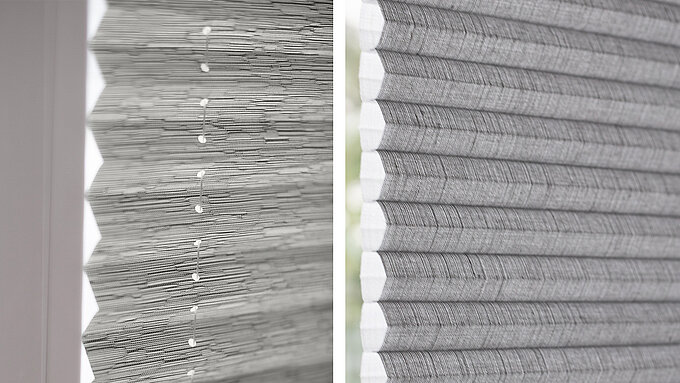 I nostri plissettati sono disponibili in diverse qualità di tessuto, design, motivi e gradi di trasparenza. A differenza dei plissettati a nido d'ape, sono costituiti da un solo strato di tessuto e sono ottimi come elementi decorativi o per la protezione visiva.