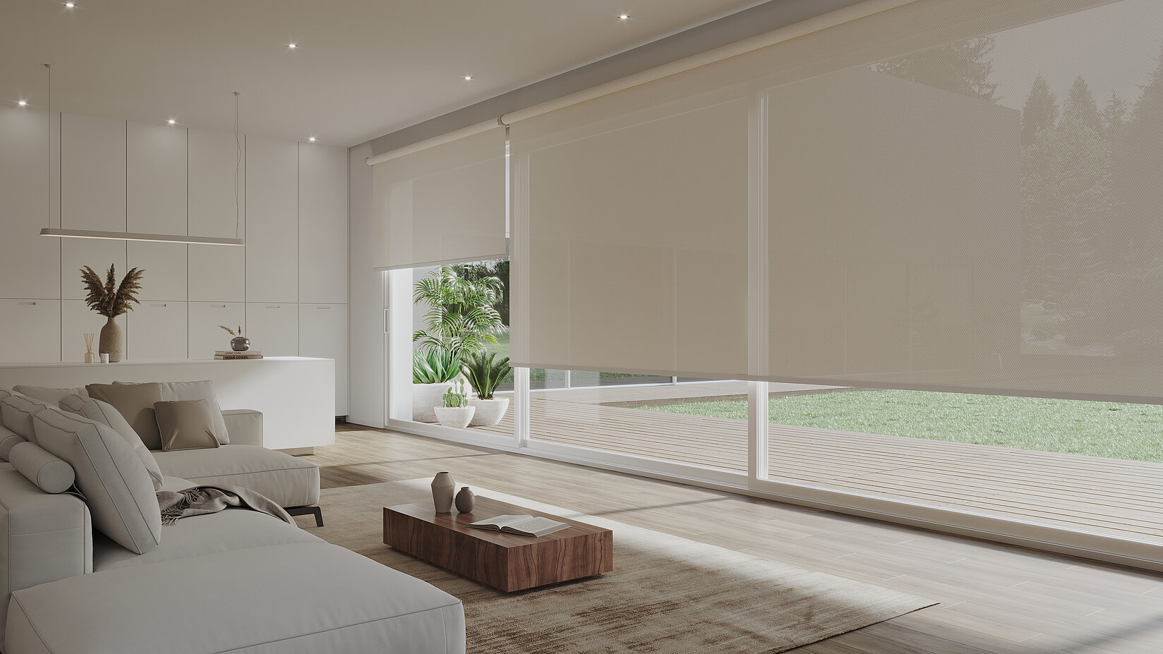 Abbassando la tenda a rullo si ottiene la massima protezione visiva e antiabbagliante, mentre sollevandola si libera la finestra per fare entrare la luce diurna. La tenda a rullo con cassonetto protegge dalla polvere la tenda avvolta.