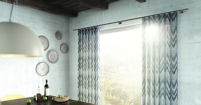 In versione standard o realizzati su misura: i sistemi a binario interno di interstil garantiscono un’apertura e una chiusura delle tende senza sforzo e pressoché silenziose. Gli scivoli nei canali di scorrimento rimangono sempre all’interno della pista e non si fermano nemmeno davanti a bovindi e angoli.