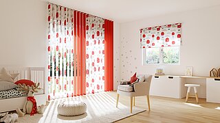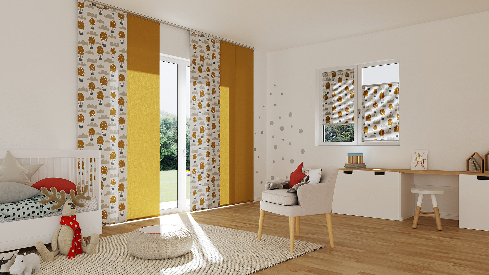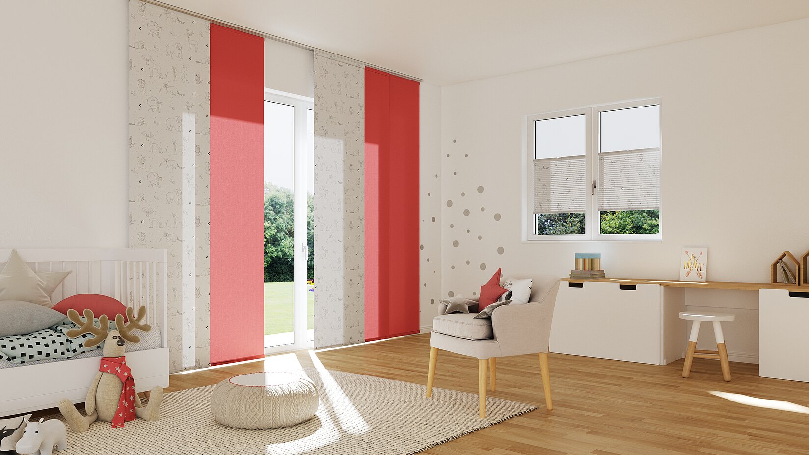 La giusta quantità di luce diurna è decisiva per il benessere di un bambino. Usando tende verticali e tende a pannello come protezione visiva nella cameretta dei bambini è possibile controllare la quantità di luce che penetra nell’ambiente, un aspetto particolarmente importante per favorire il sonno del bambino.