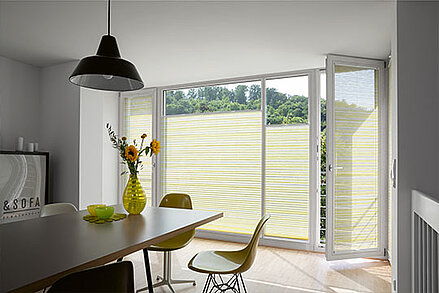 MHZ propone tende plissettate tese su misura per finestre con una larghezza fino a 1,80 metri. MHZ realizza una protezione visiva e solare adatta anche per finestre con una larghezza fino a 4 metri (con un’altezza massima fino a 2 metri): le tende sospese* plissettate a nido d’ape DUETTE® offrono un’interessante libertà di design nella configurazione del prodotto scelto.